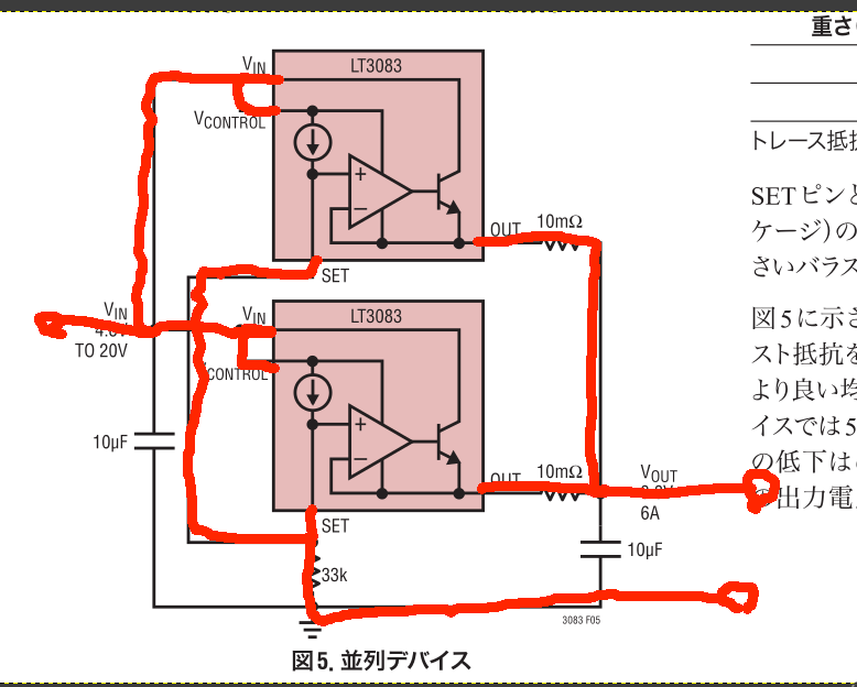 LT3083単体使用の場合で3.3V出力とするならば66kΩでSET端子を接地(GND接続)しますが